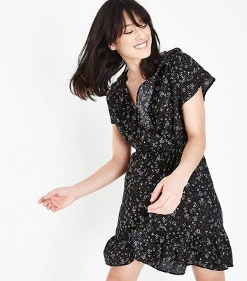 Black Ditsy Print Wrap Tea Dress | Miss black wrap tea dress