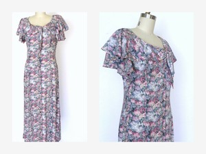 Vintage 80s Floral Maxi Dress Button vintage 80s floral dress
