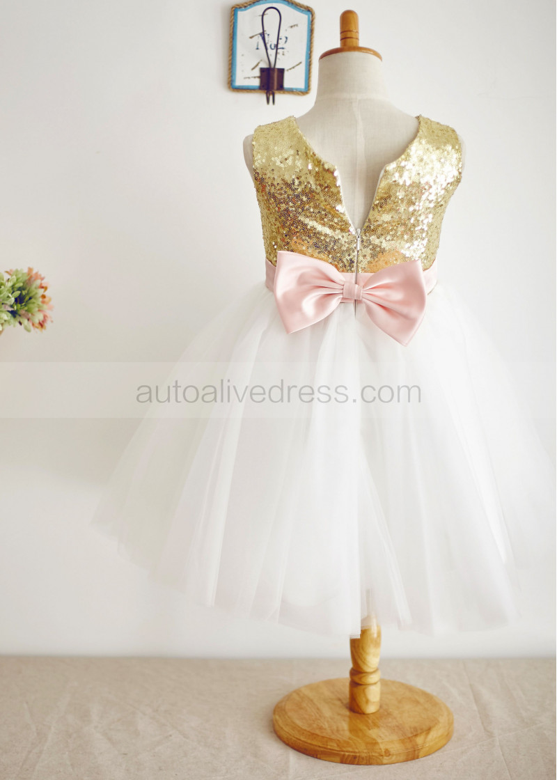 Gold Sequin Bodice Flower Girl Dress white and gold flower girl dresses