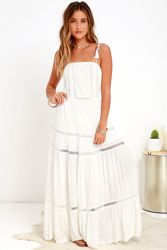 Embroidered Maxi Dress - Ivory Dress white embroidered maxi dress