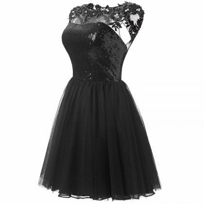2018 Elegant Woman Short Cocktail Dress black tulle cocktail dress