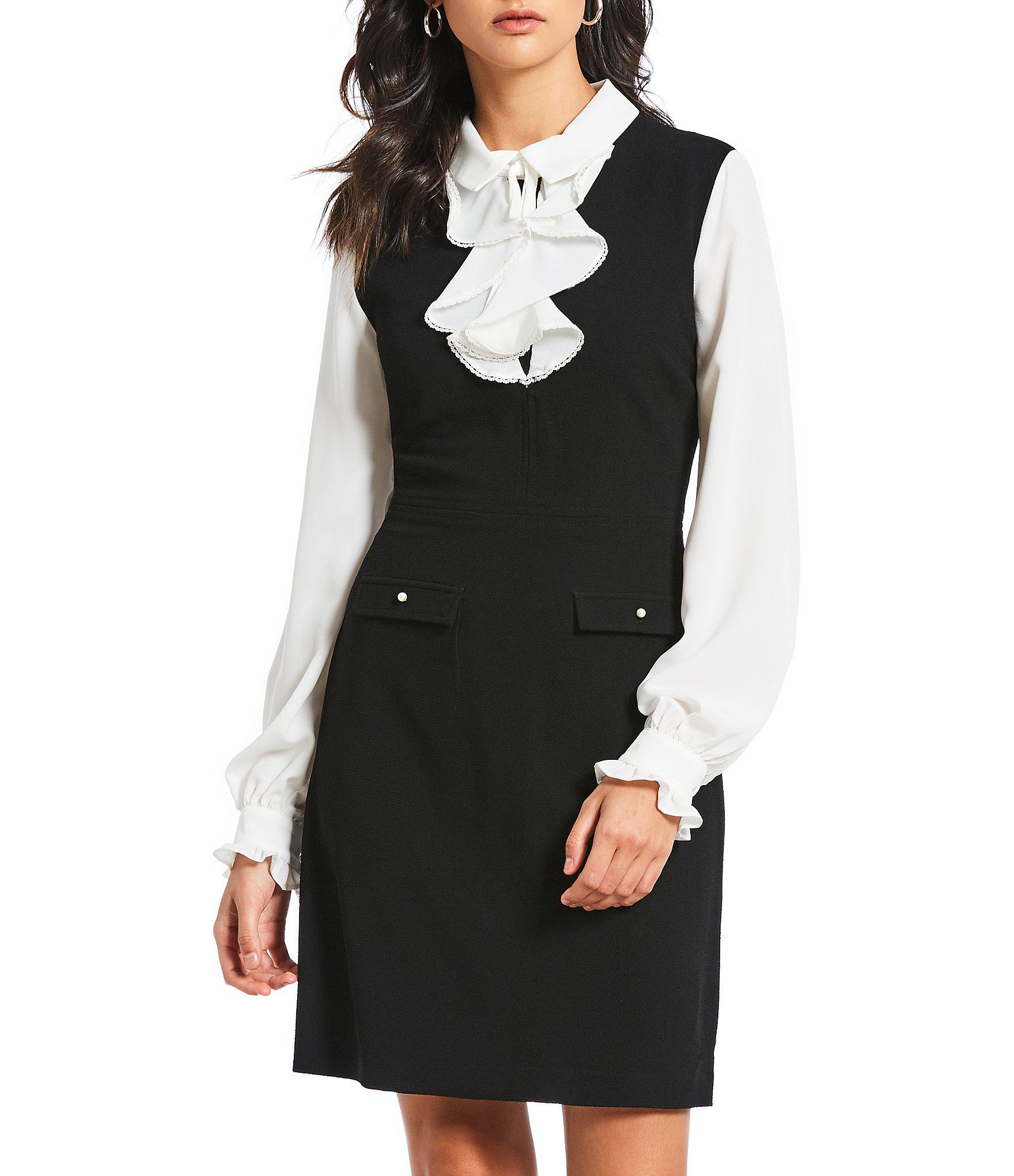 Karl Lagerfeld Jumper Dress With Ruffle black jumper dress with white frill