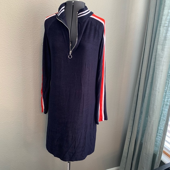Navy Blue Zip Up Sweater Dress zip up sweater dress
