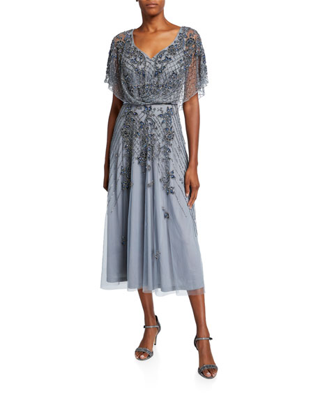 Theia Dolman-sleeve Handed Beaded Midi midi length cocktail dresses with sleeves