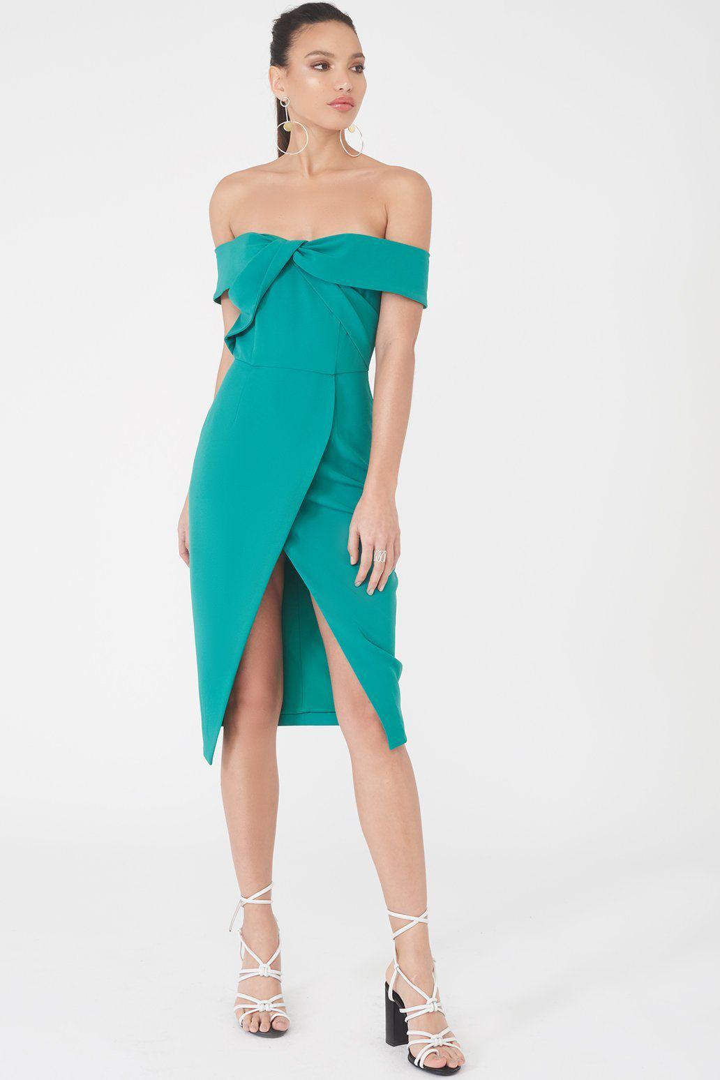 Woven Twist Bardot Midi Dress in Green lavish alice bardot dress