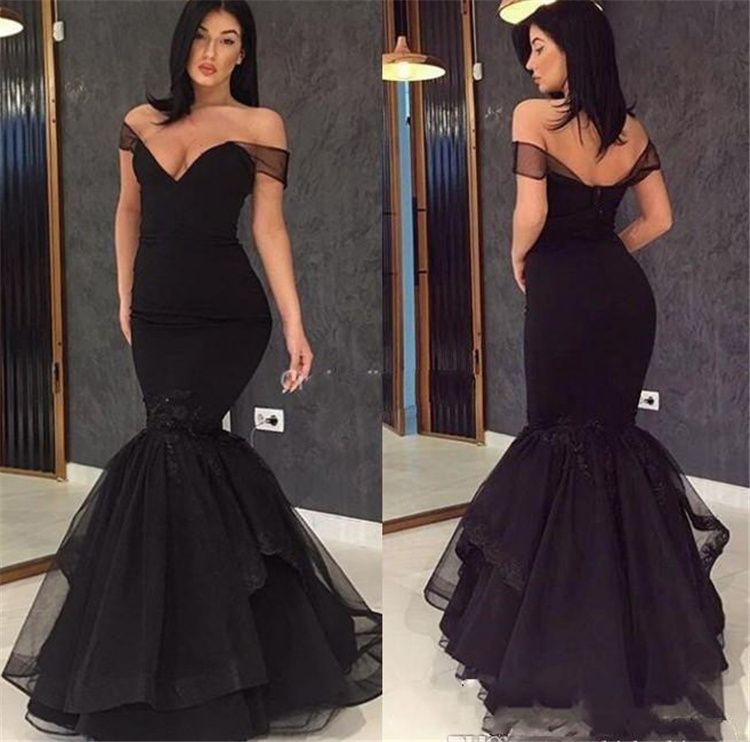 Black Off Shoulder Mermaid Prom Dresses celebrity cocktail dresses 2019