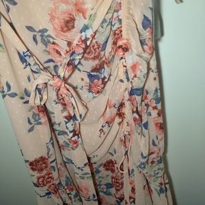 Eliza J | Long Sleeve Floral Faux Wrap floral ruched chiffon faux wrap dress eliza j