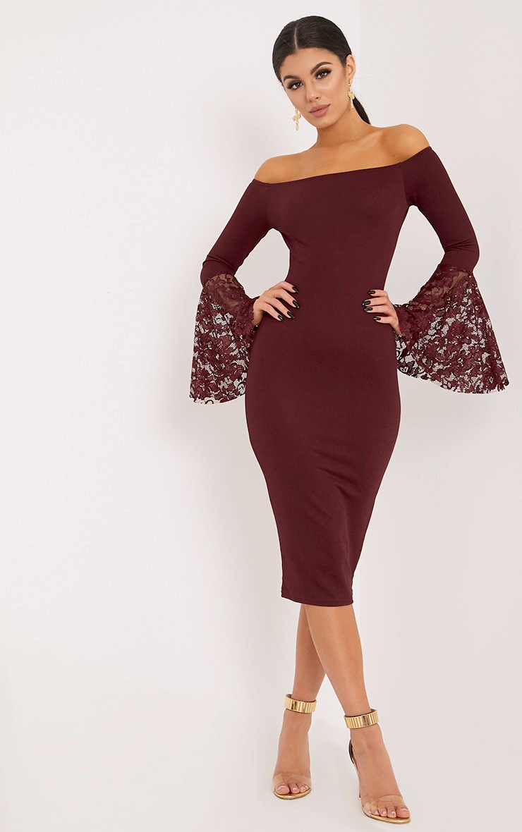 Embroidered Flared Sleeve Bodycon Dress flared sleeve midi dress