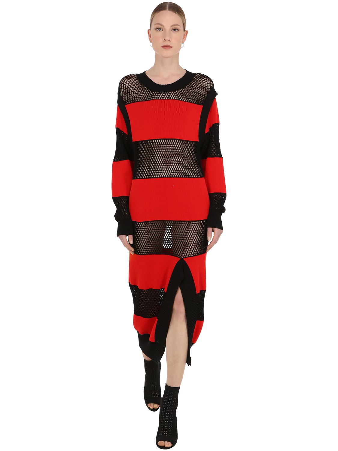 Sonia Rykiel Striped Mesh \u0026 Cotton Knit black and red jumper dress