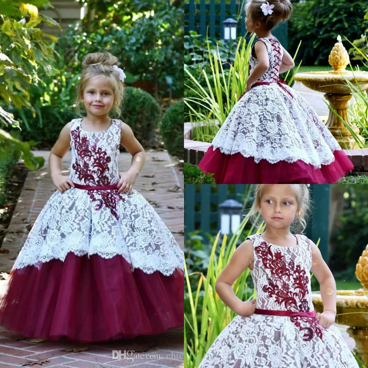 maroon and white flower girl dresses