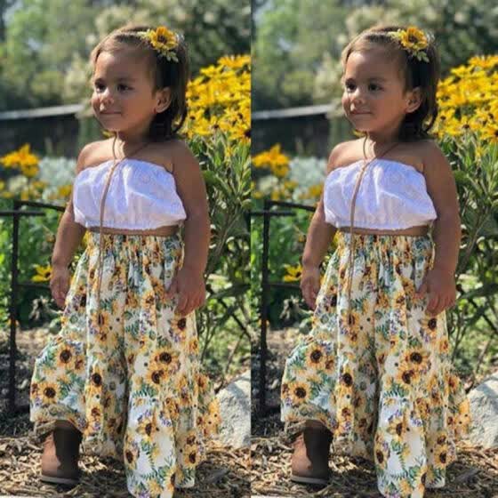 Toddler Kids Baby Girls Crop Tops sunflower kids dress