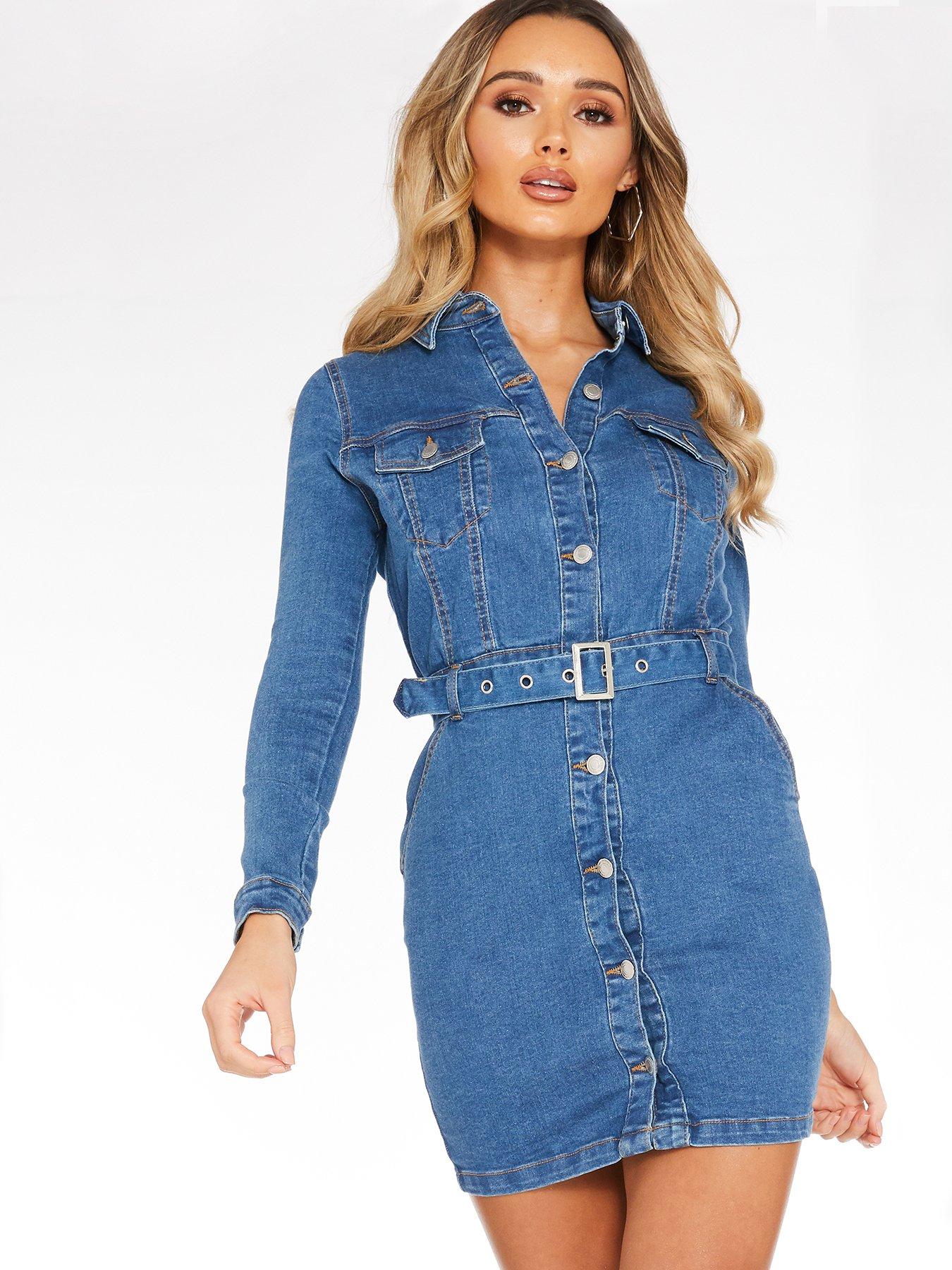long sleeve denim midi dress