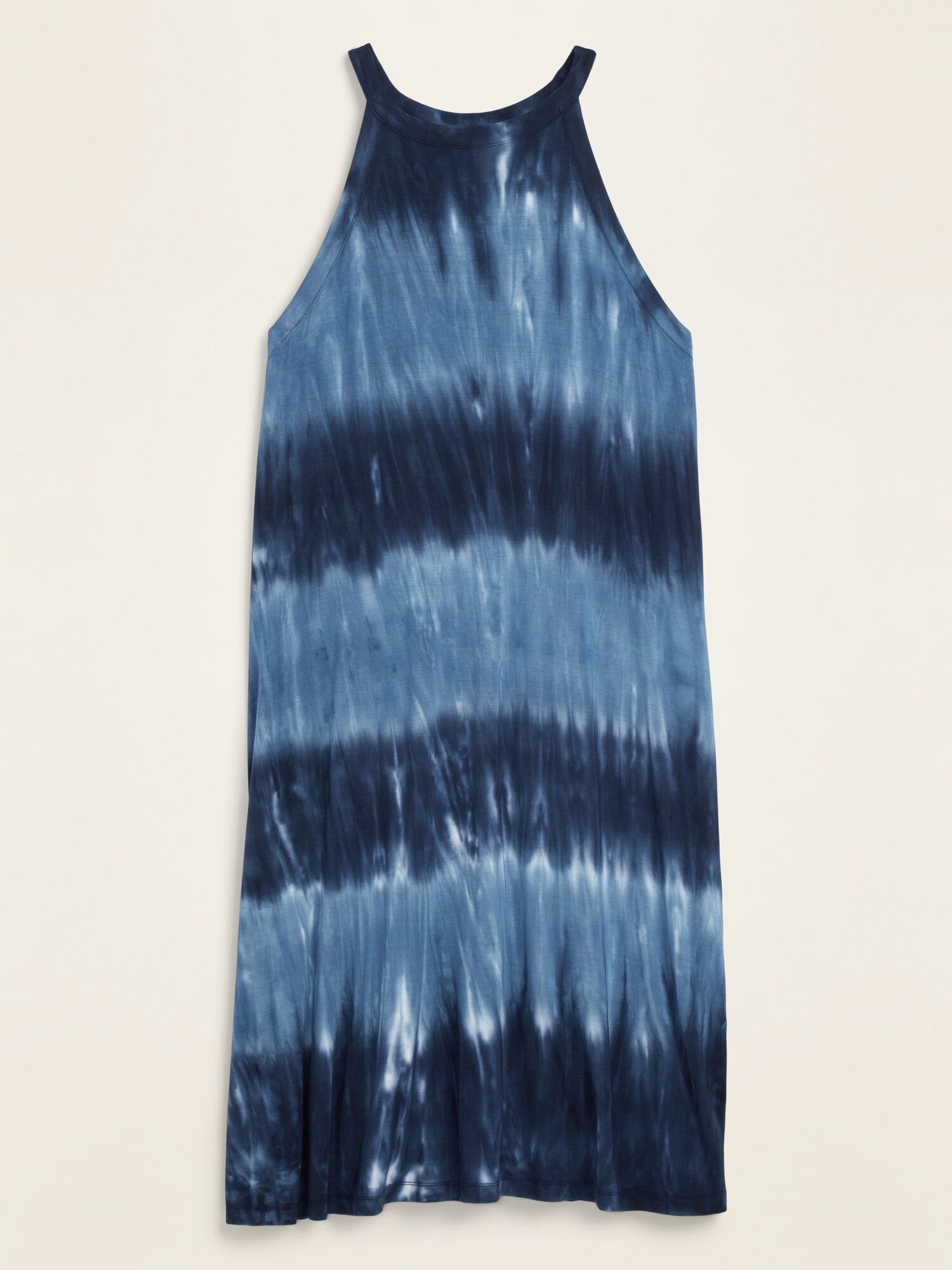 High-Neck Sleeveless Tie-Dye Plus-Size plus size swing dress