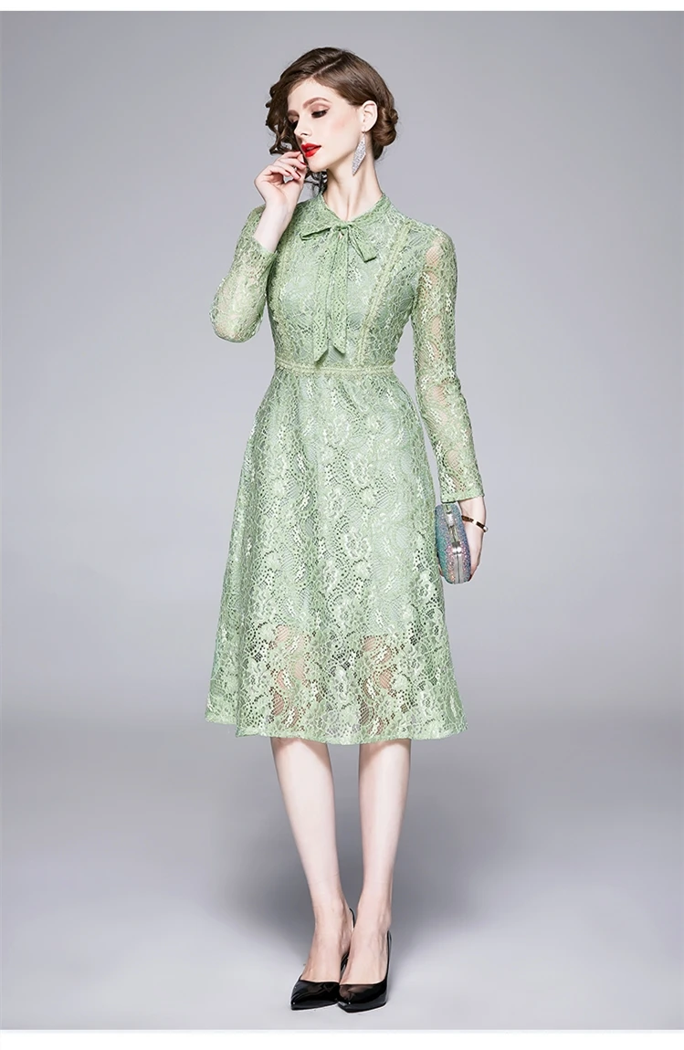 Women Spring Elegant Green Lace Dress spring cocktail dress