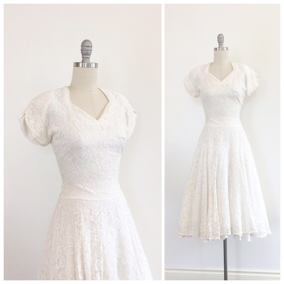 50s White Lace Wedding Dress / 1950s 1950s white dress