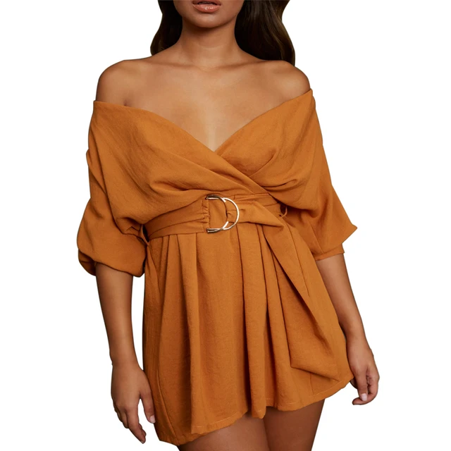Women Off Bardot Mini Wrap Burnt Orange bardot mini wrap dress