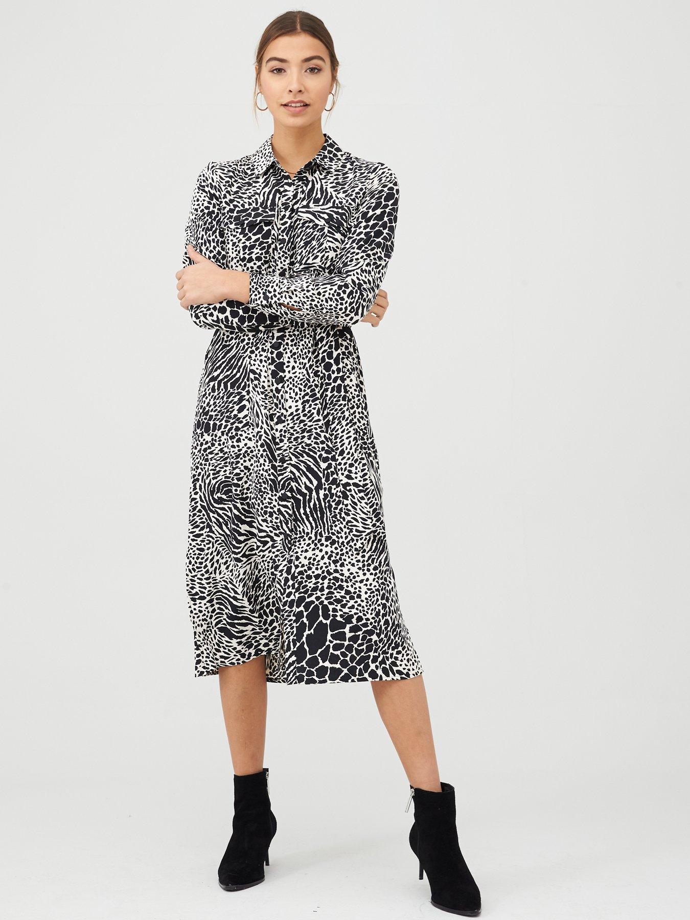 Warehouse Mono Animal Midi Shirt Dress warehouse black dress