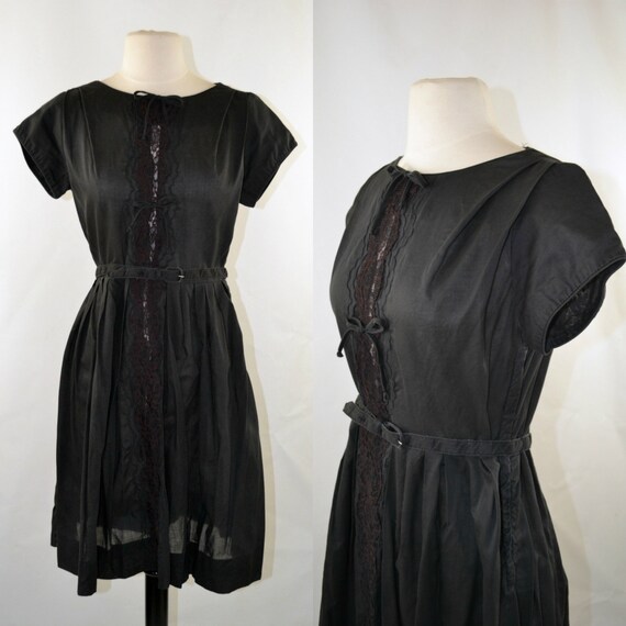 1950s Little Black Dress Short Sleeves black tea length dress