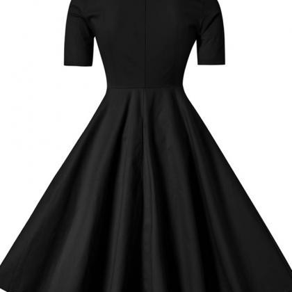 Black Dress V-neck Mid-Length Dress black mid length dress