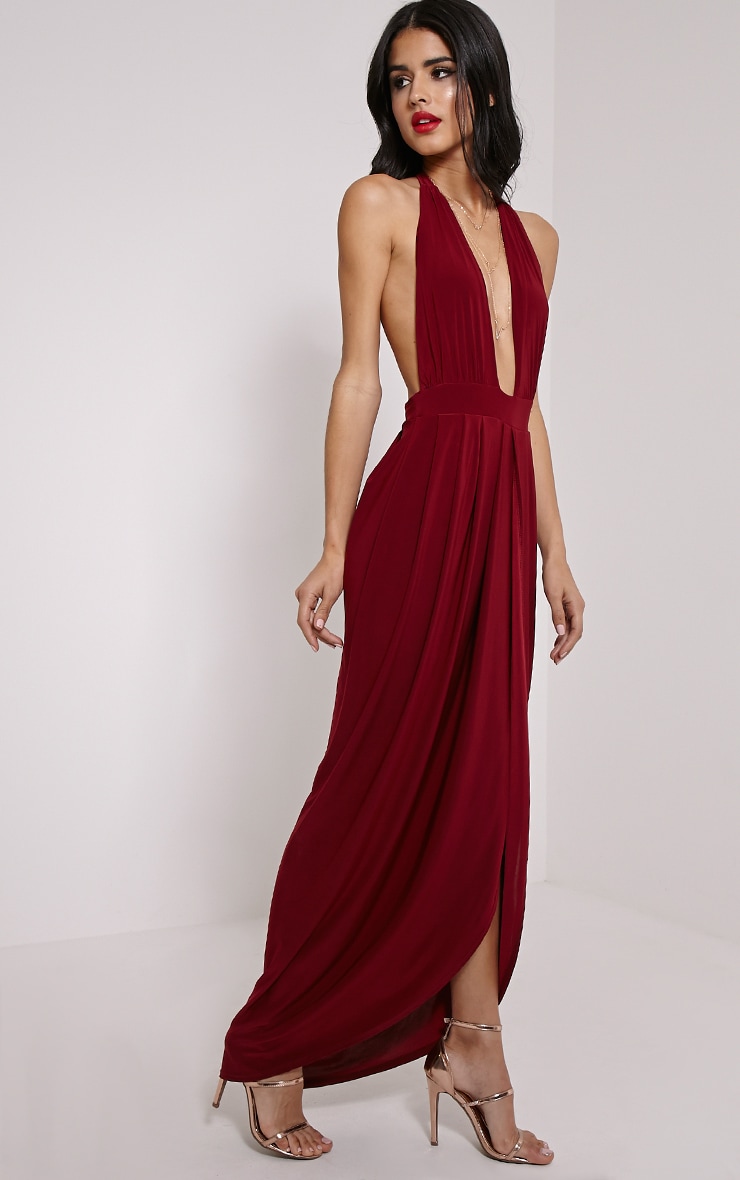 Biba Burgundy Halterneck Maxi Dress biba maxi dress