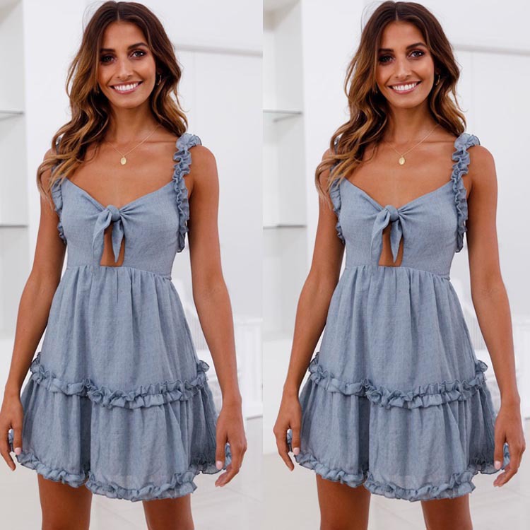 Fashion Ruffle Spaghetti Strap Hot Sale one piece dress hot