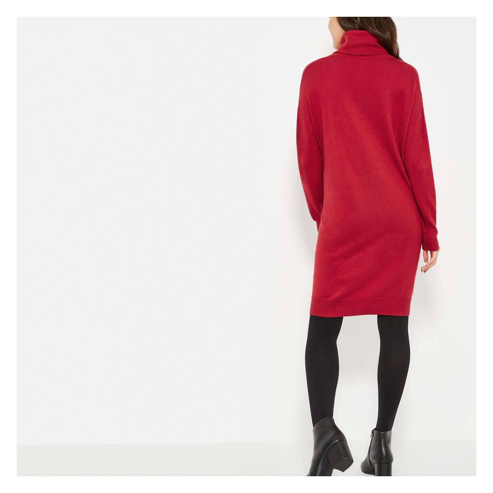 red cowl neck sweater dress