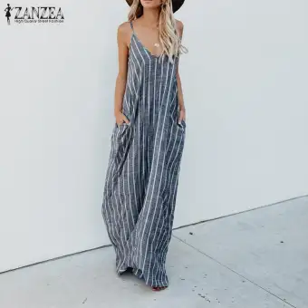 Women Sling Striped Boho Maxi Dress