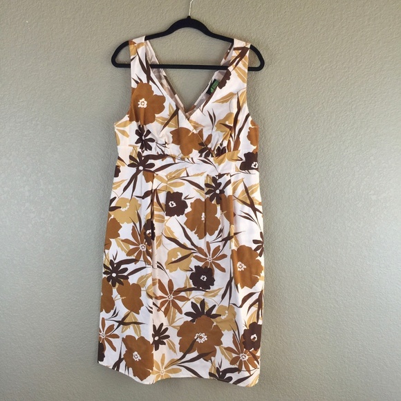 Brown Tan Floral Cotton Sun Dress lane bryant sun dresses