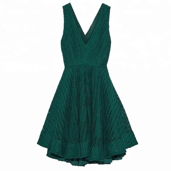 Summer Flared Woven Sexy High V Neck one piece mini skirt dress