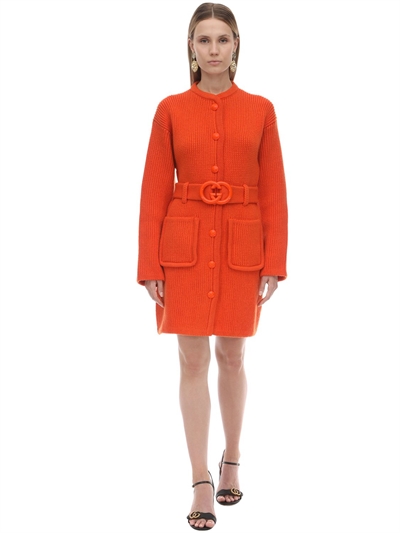 Gucci - Gg belted wool knit maxi belted maxi cardigan