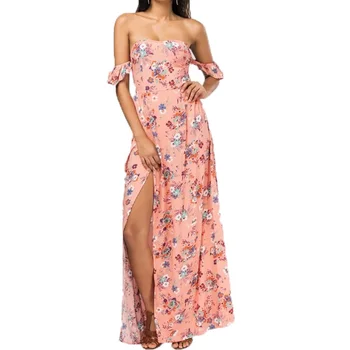 Off Shoulder High Slit Ruffles Women off shoulder maxi dress casual