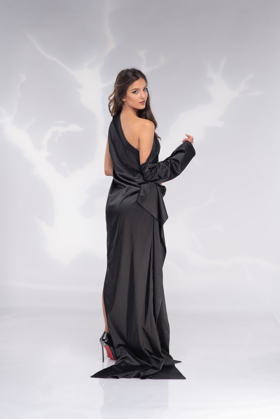 Black Maxi Party Dress With Slit Front black maxi cocktail dress