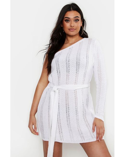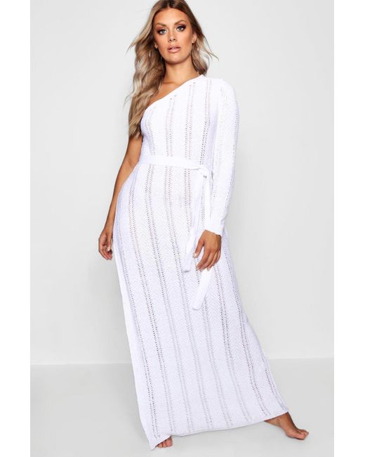 Womens Plus One Shoulder Crochet Beach boohoo beach dress