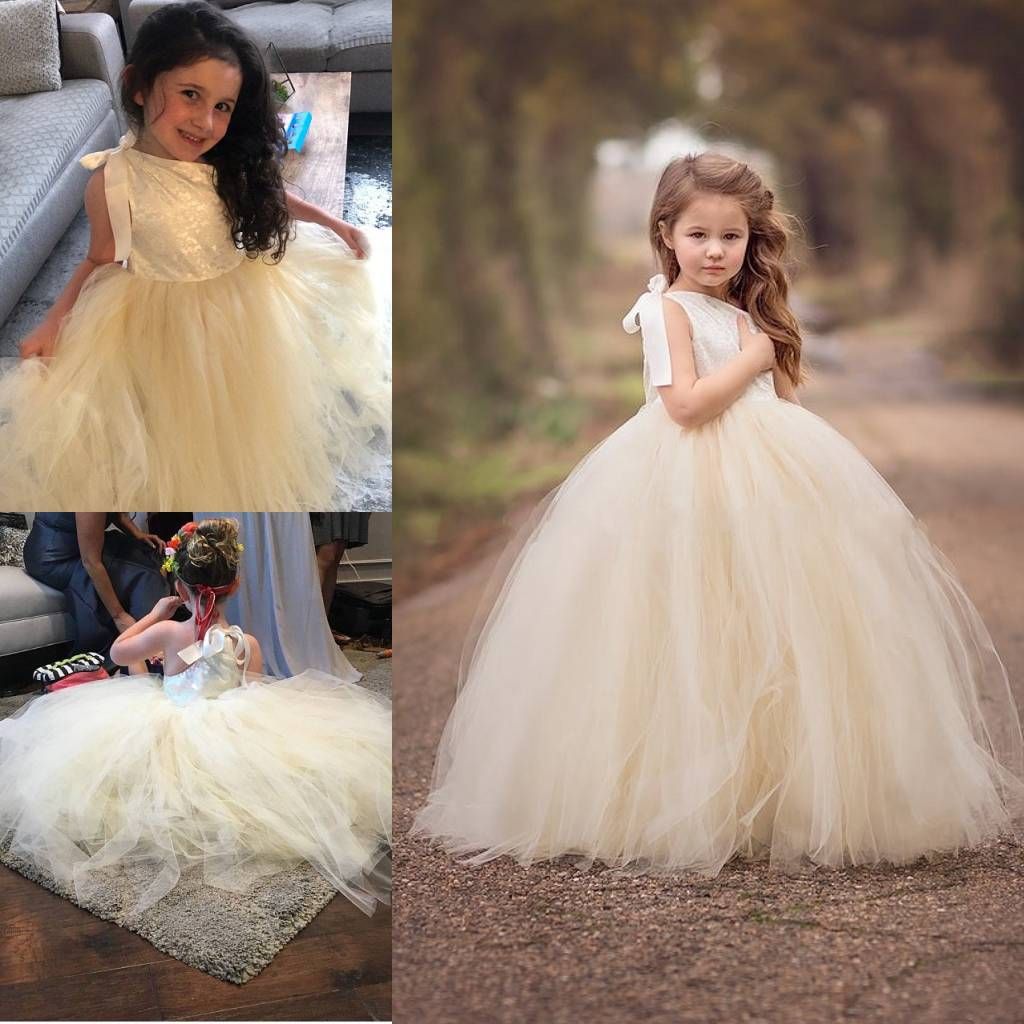 2020 New Ivory Lace Flower Girl Dress champagne tutu flower girl dresses
