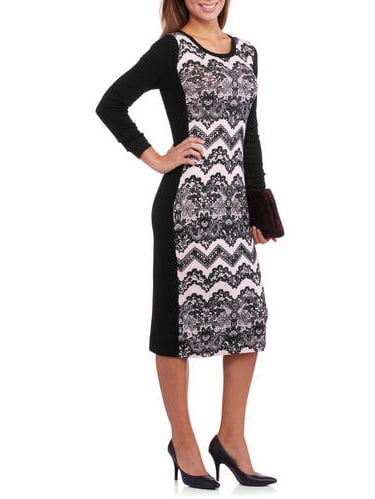 Long Sleeve Lace Print Sweater Dress allison brittney sweater dress