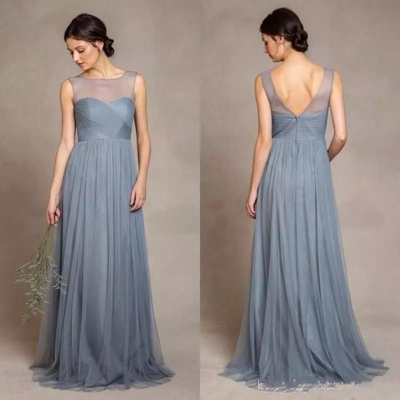 Dusty Blue Bridesmaid Dresses Illusion dusty blue plus size dress