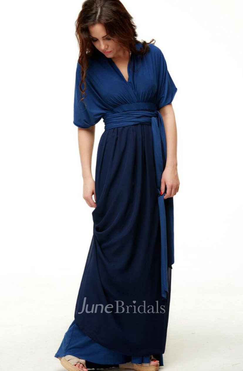 Navy Crepe V Neck Wrap Maxi Bridesmaid navy wrap bridesmaid dress