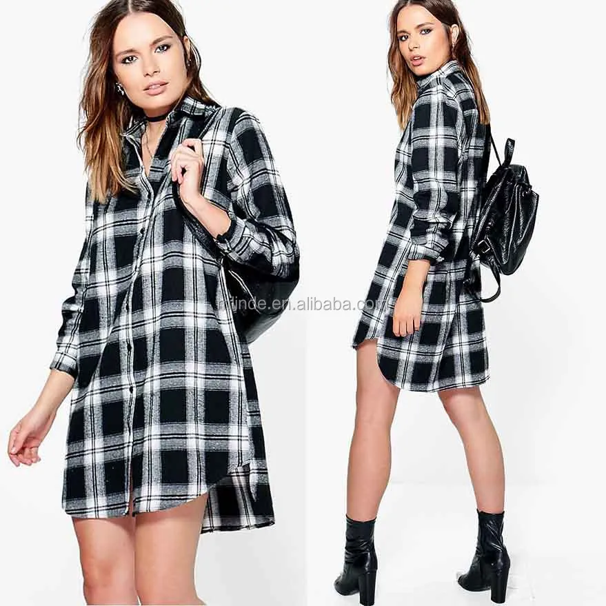 100% Viscose Check Dip Back Shirt Dress red plaid dress womens