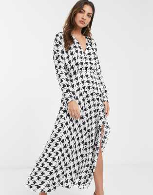 ASOS DESIGN wrap front midi dress in houndstooth wrap dress