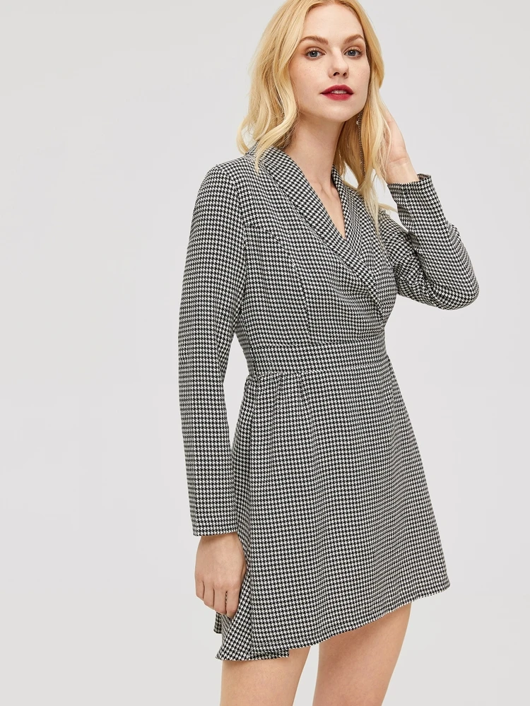 Shawl Collar Houndstooth Wrap Dress houndstooth wrap dress