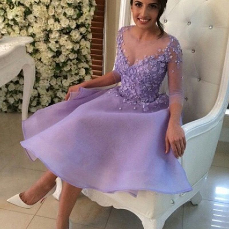 Jewel Long Sleeves Knee Length Lilac lilac cocktail dress
