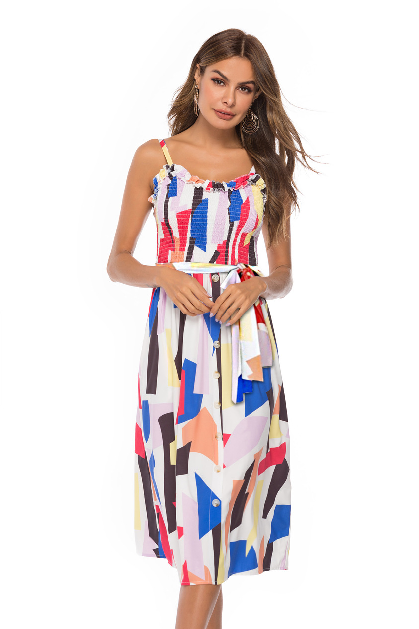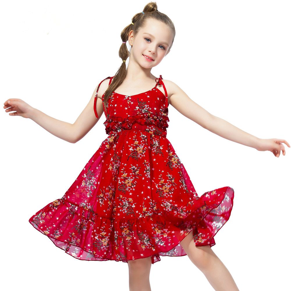 2020 Cute Girl Summer Fluffy Red Floral sundress silhouette