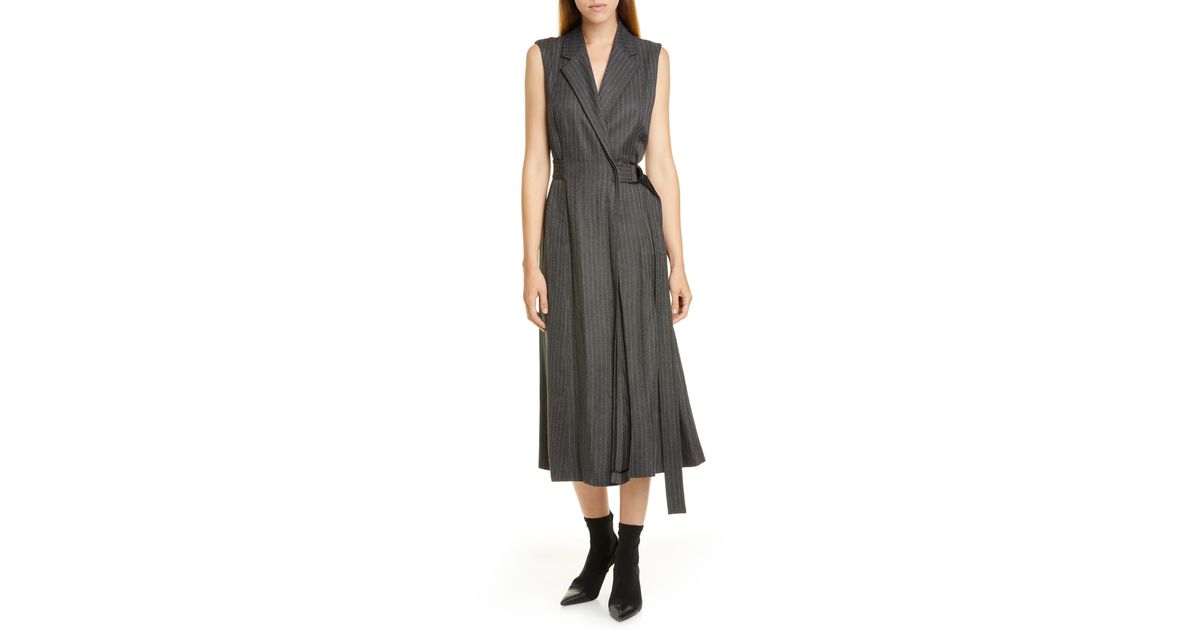 Pinstripe Suiting Wrap Midi Dress pinstripe midi dress