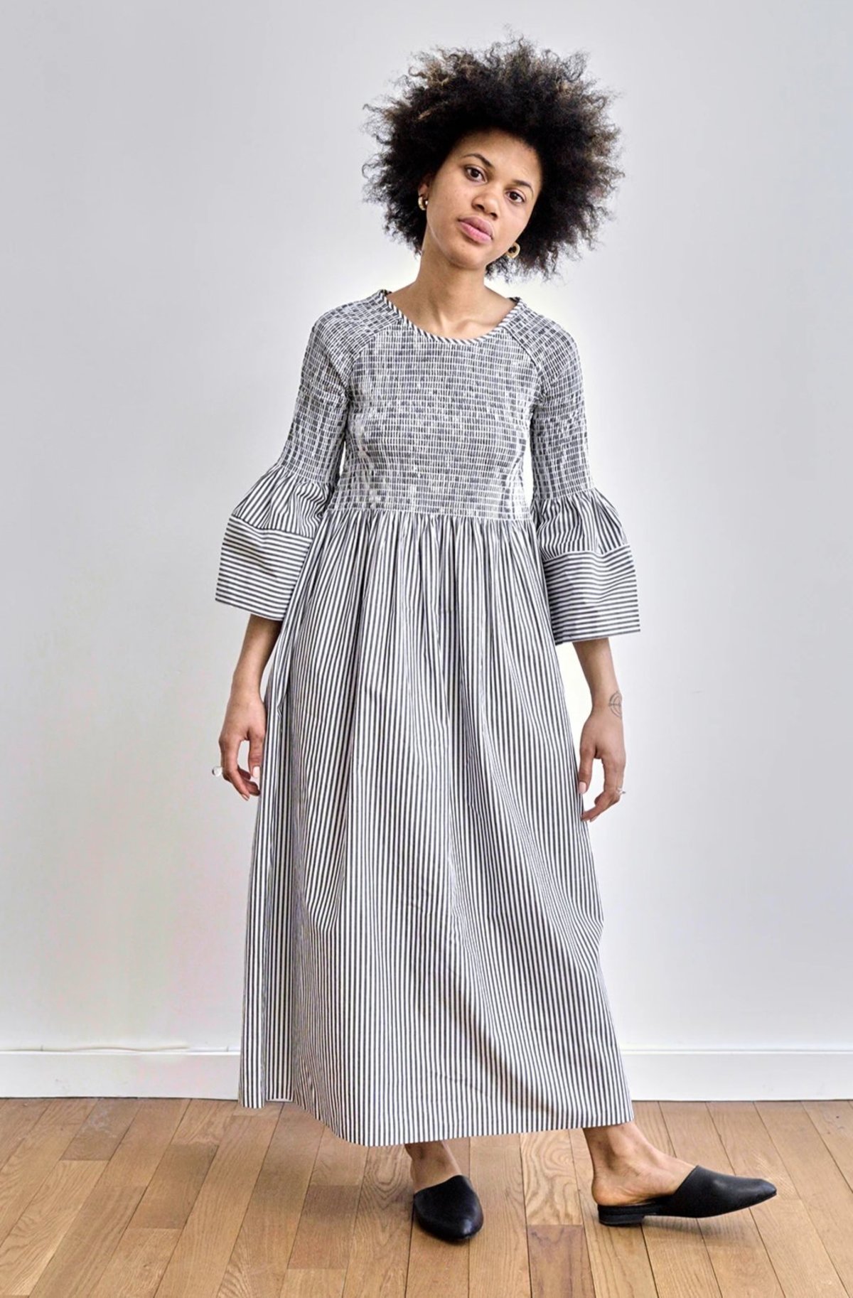 pinstripe midi dress