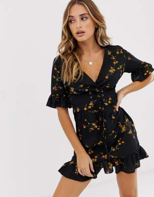 BLACK FLORAL PRINTED VELVET pretty little thing black floral dress