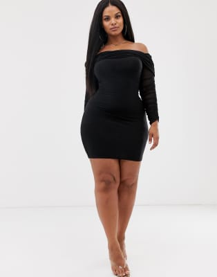 off shoulder ruched mini dress in black black ruched mini dress