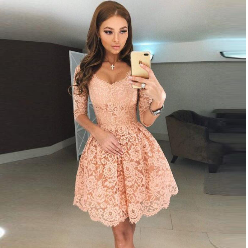 2018 Blush Pink Lace Short Homecoming beige cocktail dress