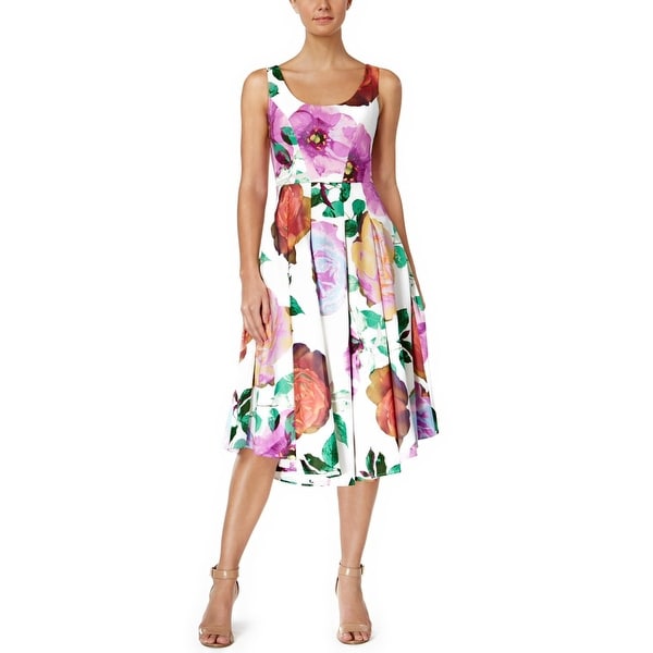 Scuba Crepe Floral Print Sleeveless Fit calvin klein fit and flare midi dress