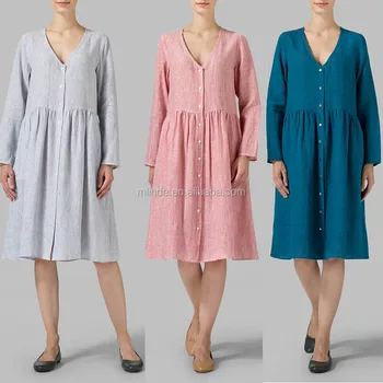 Women Chic Dresses Summer Linen Button straight cut formal dresses