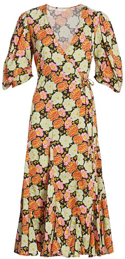 Neon Floral Puff Sleeve Wrap Dress rhode fiona dress